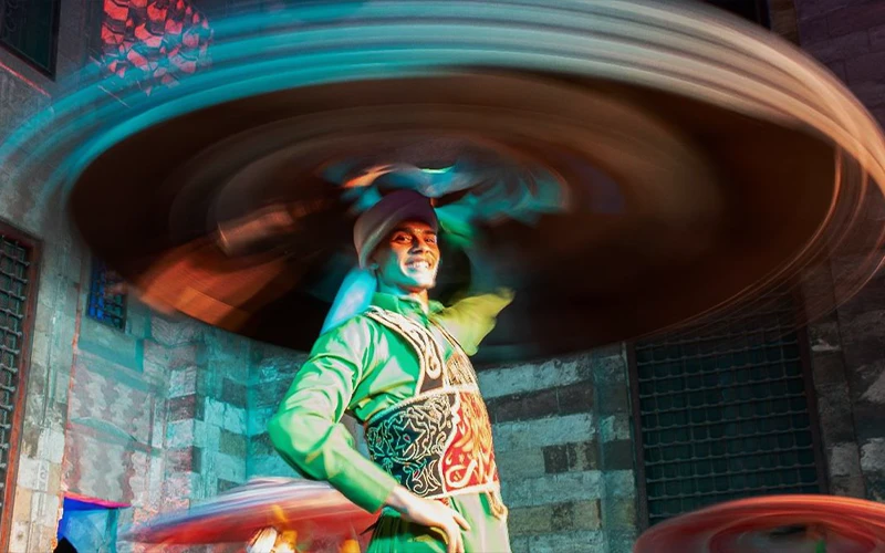 享受精彩开罗 Wekalet El Ghoury 的 al tannoura 埃及传统舞蹈团的旋转舞和太阳金字塔之旅。 Wekalet El Ghoury 是开罗市中心爱资哈尔地区一座建筑风格令人惊叹的艺术中心。